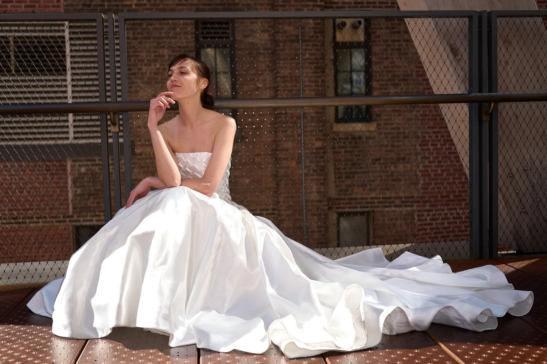 To capture the nuance of Angelo Estera’s designs, the focus shifts to form, texture, and the architecture of each gown. This approach guided my editorial during New York Bridal Fashion Week, where Estera presented a collection defined by sculpted bodices, distinctive fabrics, and a refined sense of quiet drama — each piece unfolding with intention, elegance, and a striking attention to detail.